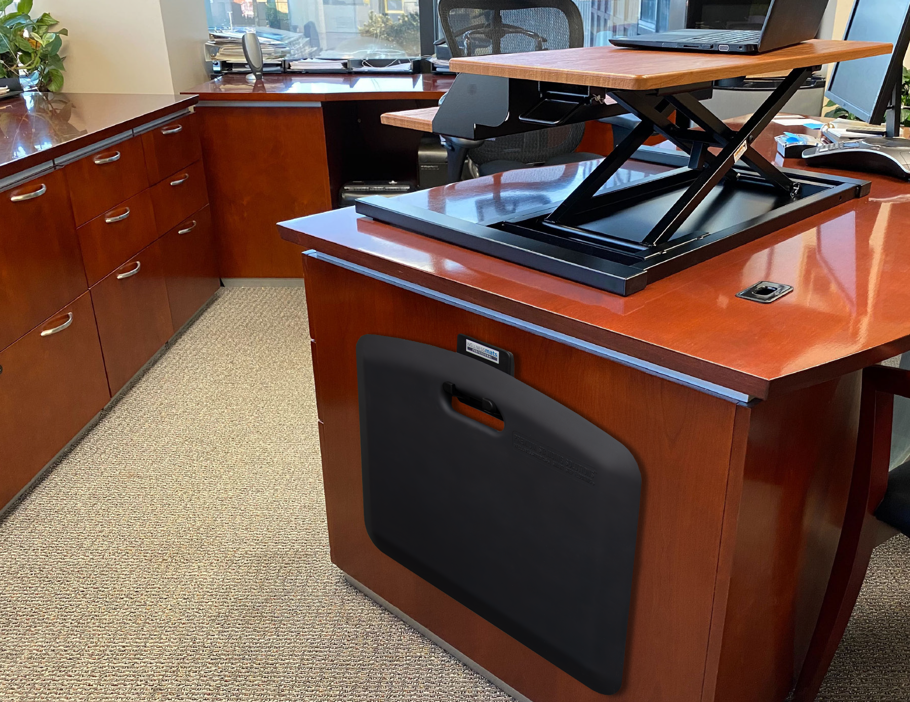 Whether working or learning from home or in an office, add comfort and support by adding a Premium Standing Solution to your workspace. Our 100% Made in America anti-fatigue mats help alleviate back and leg pain while you stand in any footwear or flooring, promoting a healthier way of life.