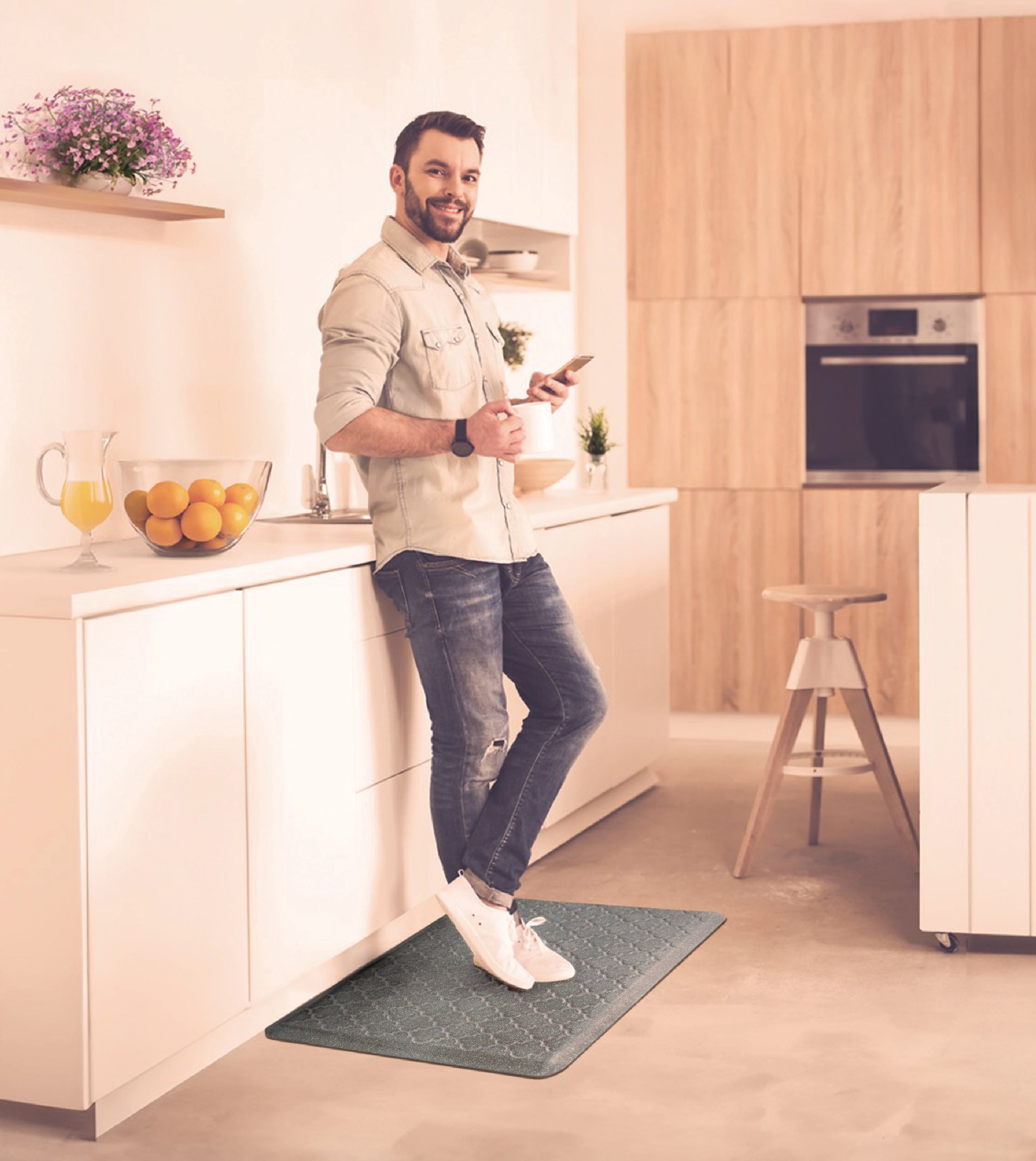 Our ergonomically designed mats help provide padded support with a soft, smooth surface and buoyant core that may help reduce muscle and joint discomfort after long periods of standing.
