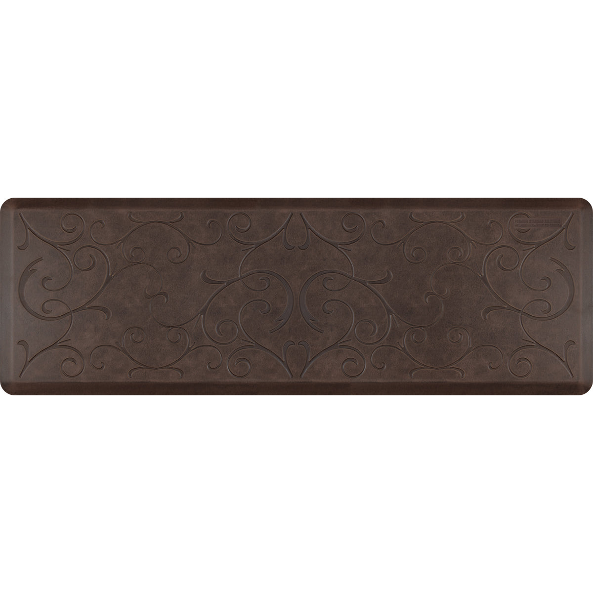 The Bella Collection features a beautiful, lyrical relief pattern with a soft, subtle floral design. Sweeping curves of the Scalloped-Bella shape will add the right amount of adornment to your standing desk space. Antique Dark adds a hint of sophistication to any space and is a perfect anti-fatigue complement to any floor. The WellnessMats Standing Desk Mat offers premium comfort and performance regardless of footwear or flooring. Easy to clean, durable, and suspends body weight to relieve stress on muscles and joints. The beveled edges never curl. One-piece construction means no delamination – ever.